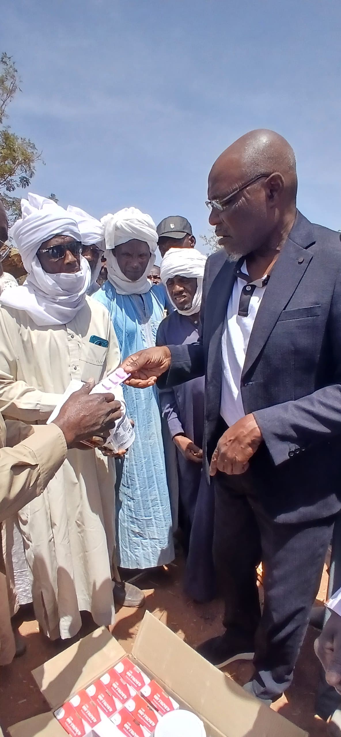 Le ministre a remis un kit d’antiparasitaire aux éleveurs afin de desinfecter leurs troupaux
